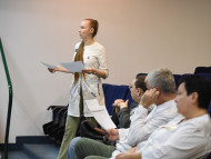Были представлены новые сотрудники кафедры из числа специалистов диспансера заведующая отделением медицинской реабилитации, д.м.н. Татьяна Сивохина и заведующая отделением функциональной диагностики, к.м.н. Виолетта Родионова.