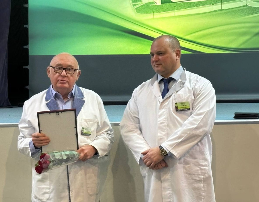На утренней планерке в Самарском областном клиническом онкологическом диспансере главный врач, главный внештатный специалист по онкологии Минздрава Самарской области, заведующий кафедрой онкологии СамГМУ, д.м.н., профессор Олег Каганов от лица всего коллектива поздравил с 75-летним юбилеем врача-онколога высшей категории Рустама Наильевича Исхакова.