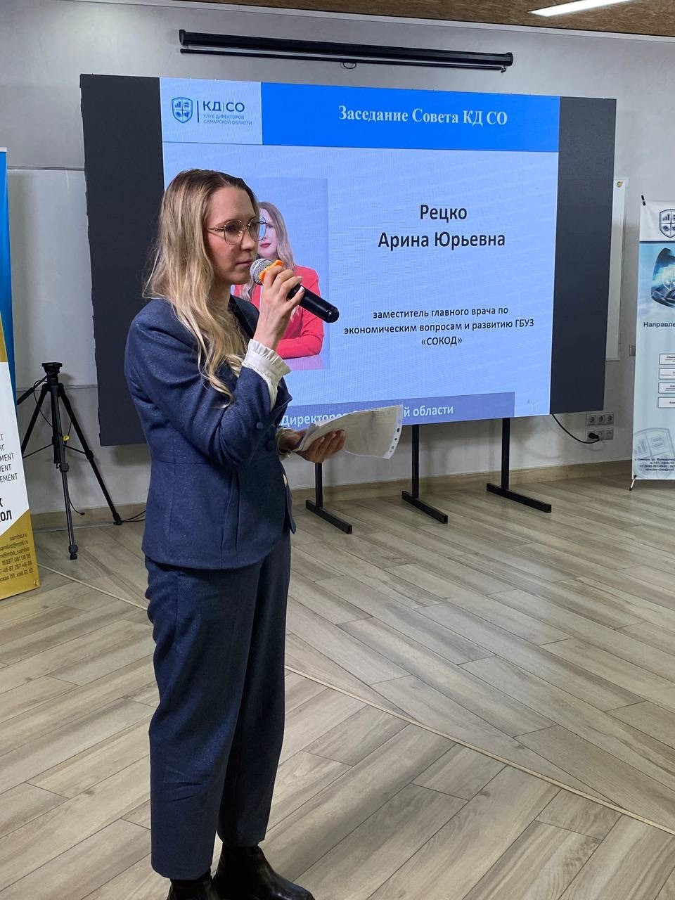 В заседании приняли участие представители Самарского областного онкодиспансера - главный врач Каганов Олег Игоревич и заместитель главного врача по экономическим вопросам и развитию Рецко Арина Юрьевна.