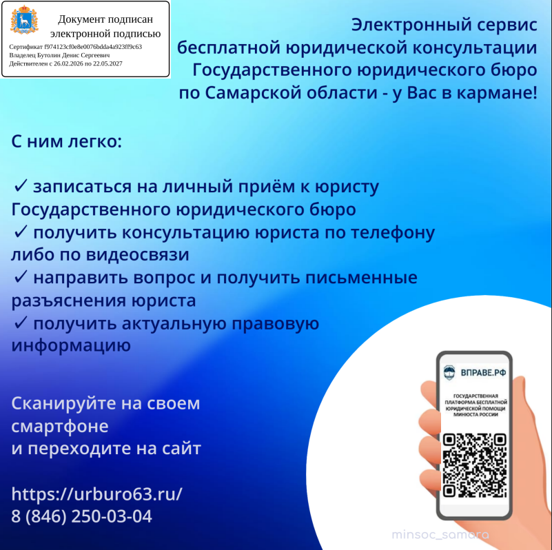 → Электронный сервис бесплатной юридической консультации Государственного юридического бюро по Самарской области у Вас в кармане!